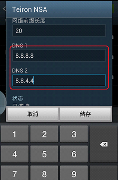 将DNS1改成8.8.8.8。然后将DNS2改成8.8.4.4保存即可